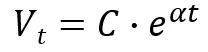 Since liquidity shares from the pool increase only when LPs add additional liquidity to the pool, the growth of the geometric mean of the reserves due to trading fees belongs completely to LPs. Therefore, assuming there is no change in the ratio of the reserves of the pool, that is price is constant, the value of the LP’s stake grows at an exponential rate from trading fees. Assuming the initial value of a LP’s stake is C and the geometric mean grows at a constant rate, α, the total value at any time t can be calculated thusly,