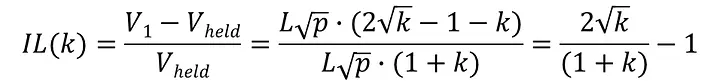 where k is a number from 0 to infinity that represents the change in price (the reserve ratio) from the time liquidity was provided to the pool.